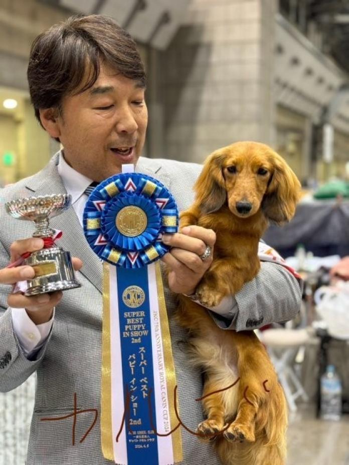 カニンヘンダックスフンド(ロング)のパパ犬、カルビくんです😊 毛色はきれいなレッドで、とっても可愛いお顔をした自慢の男の子です。 小さい体ながらバランスの良い体つきで、ダックスらしい魅力がしっかり詰まった子です。性格もとても穏やかで人懐っこく、可愛らしい表情でそばに来てくれる姿に、つい頬がゆるんでしまいます🐶✨ そしてカルビくんは JKCチャンピオン のタイトルを持つ優秀なパパ犬でもあります。血統面でもとても魅力のある子で、可愛さと犬質の良さをしっかり子犬たちに伝えてくれています。 見た目の可愛さはもちろん、優しい性格も魅力のカルビくん。 そんな素敵なパパから生まれる子犬たちも、可愛らしく健やかに成長しています💖