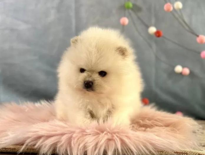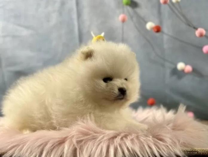 こちらはポメラニアンの男の子、カラーはホワイト。兄妹の中でおっとりとした長男タイプで、落ち着いた性格がとても魅力的な子です😊