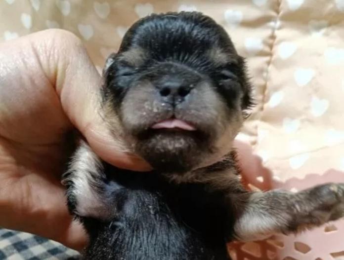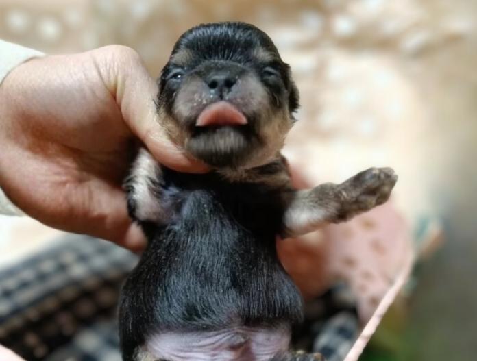 チワワ(ロング)の男の子で、毛色はブラックタン。生まれたてらしいころんとした体つきで、見ているだけで思わず笑顔になってしまう可愛さです💖