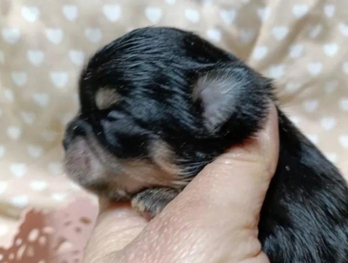 チワワ(ロング)の男の子で、毛色はブラックタン。今ならではのころころ・むちっとした体つきがとても可愛らしく、抱っこするとその愛らしさがより伝わってきます😊