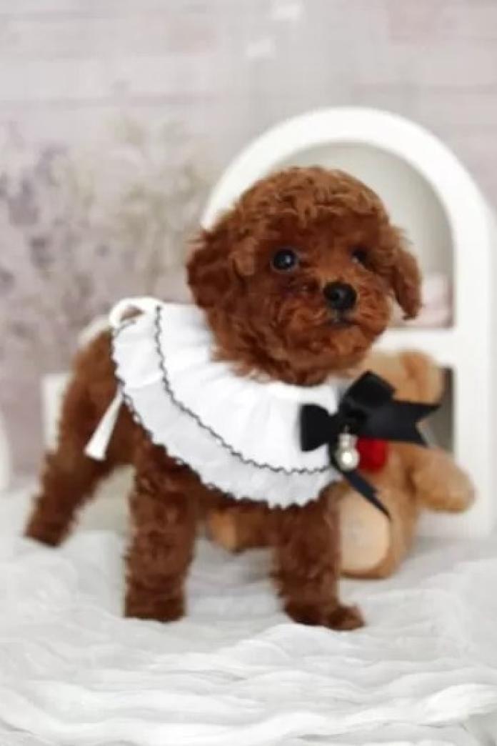 トイプードルの男の子らしい、やさしく穏やかな雰囲気を持ったレッドカラーの子で、そばにいるだけで心がほっとするような存在です。落ち着いた表情とふんわりとした被毛がとても可愛らしく、見ているだけでも癒されます😊