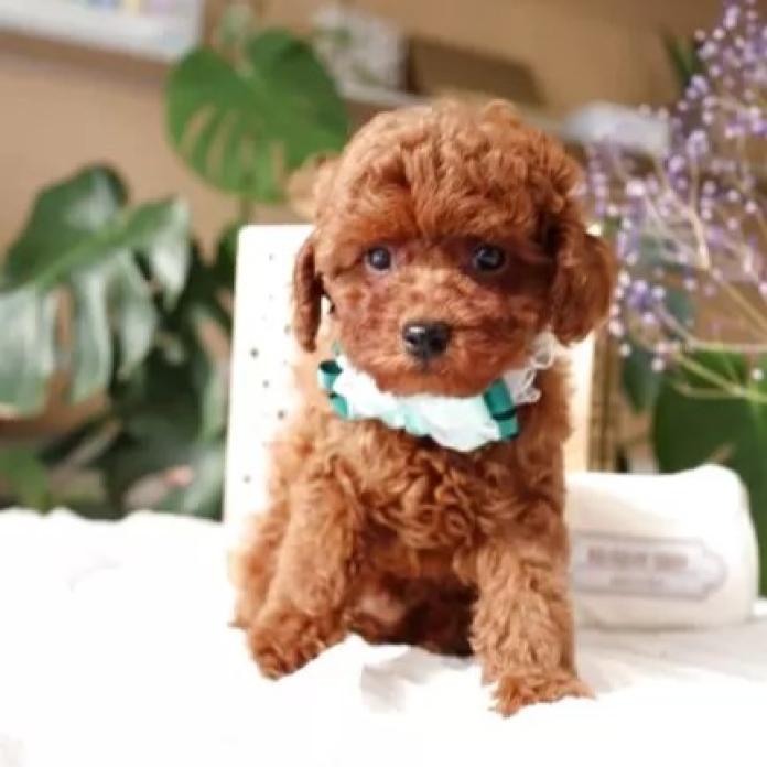 トイプードルの男の子らしい、やわらかく可愛らしい表情がとても印象的なレッドカラーの子で、ふわふわの毛並みは思わず触れたくなってしまうほどです。全体的に優しい雰囲気があり、見ているだけでも癒されます😊