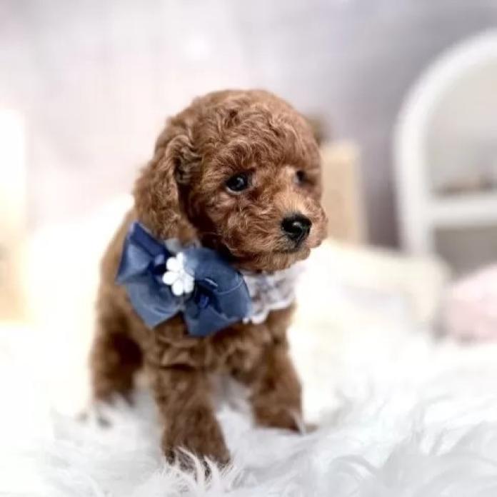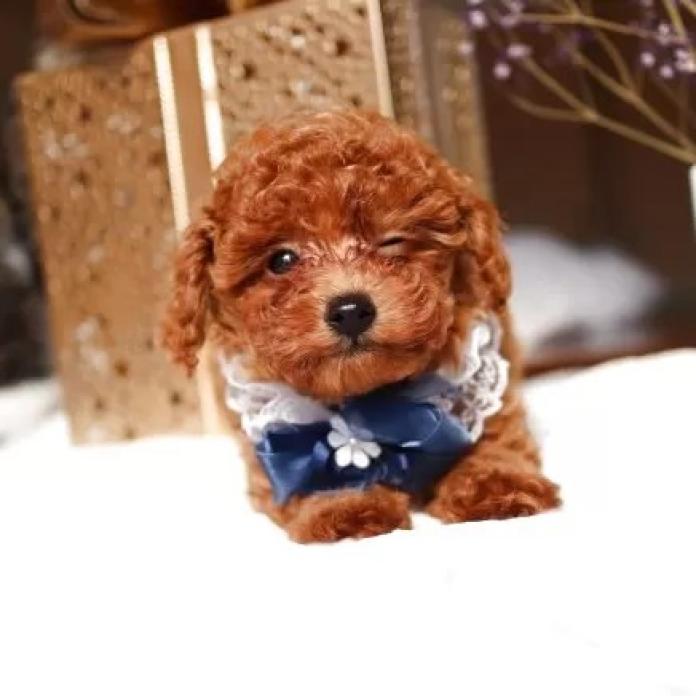 トイプードルの男の子らしい、まるでぬいぐるみのようなお顔立ちをしたレッドカラーの子で、つぶらな瞳と愛らしい表情に思わず見とれてしまいます。ふんわりとした被毛とバランスの取れた可愛いお顔で、写真でも実物でも魅力たっぷりな子です😊