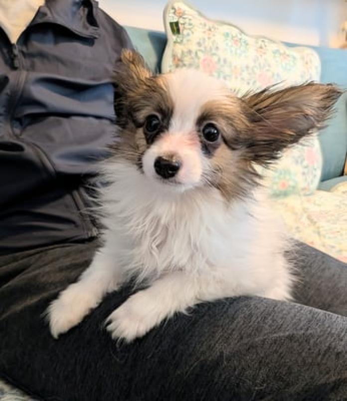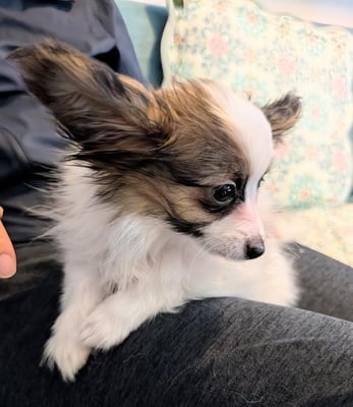 ぬいぐるみのような可愛さが特徴な男の子です。パピヨンのテンちゃんは、レッドセーブルホワイトのふんわりした被毛と優しいお顔立ちがとても愛らしく、見ているだけで自然と笑顔になってしまう子です🐶✨