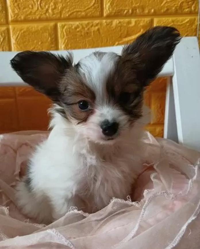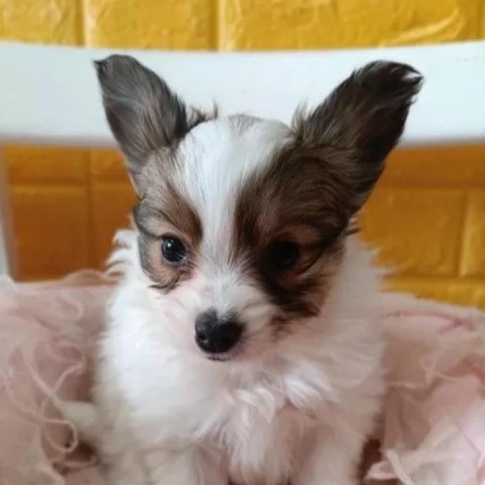 レッドセーブル&ホワイトのやわらかな色合いがとても綺麗で、成長とともにセーブルの色味が少しずつ深まり、表情豊かな被毛へと変化していきます。パピヨン特有の華やかな被毛と、女の子らしい優しいお顔立ちが魅力の子です♡