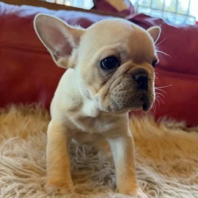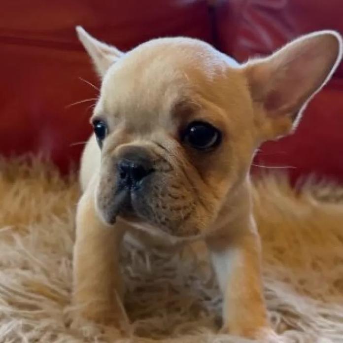 フレンチブルドッグらしい愛嬌たっぷりのお顔に、思わず見とれてしまうほどの大きな瞳がとても印象的な子です✨ 濃いめのクリームカラーも美しく、どこから見ても可愛さが際立っています。
