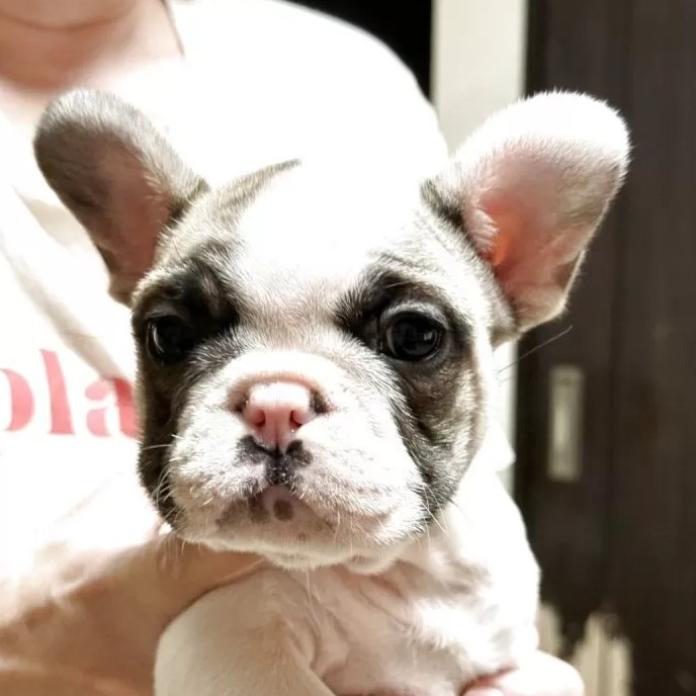 フレンチブルドッグの女の子で、カラーは可愛らしいパイド。表情がとても豊かで、つぶらな瞳と愛嬌たっぷりのお顔が印象的な子です。