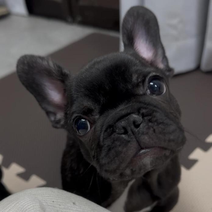 フレンチブルドッグの中でも、とても濃い真っ黒なブリンドルカラー✨ 艶のある被毛がとても美しく、キリッとした印象の中に可愛らしさが詰まった女の子です。お顔立ちもとっても可愛く、見れば見るほど愛着のわくタイプです😊