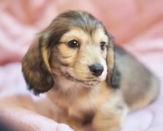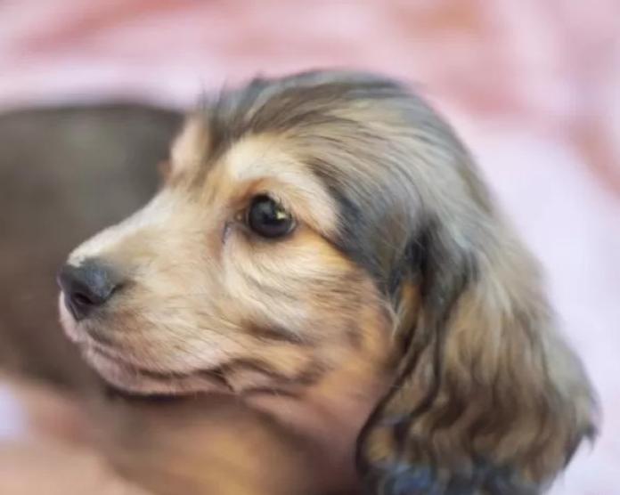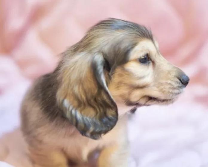 この子はカニンヘンダックスフンド(ロング)のシェイテッドイエローの男の子です。