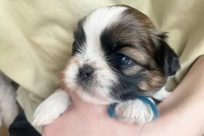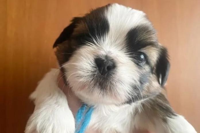 シーズーの男の子、毛色は上品なゴールド&ホワイト。お顔の模様がとっても綺麗に入っていて、思わず見とれてしまう可愛さです。ムチムチとした体つきで、抱っこするとぬくもりと安心感がたまらない可愛い子です🤍現在はあお色のリボンを付けています🎀