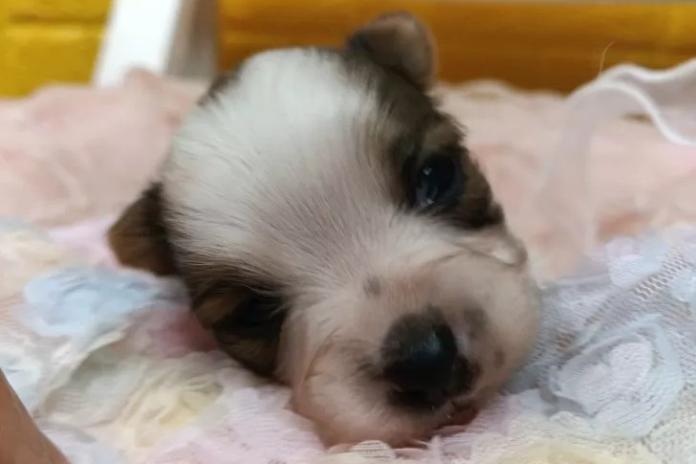 パピヨンの女の子、毛色は華やかなレッドセーブル&ホワイト。優しいレッドの差し色と白のコントラストがとても美しく、まさに“美少女ベビー”という言葉がぴったりの子です💖お顔立ちも整っていて、これからの成長がますます楽しみな存在です。