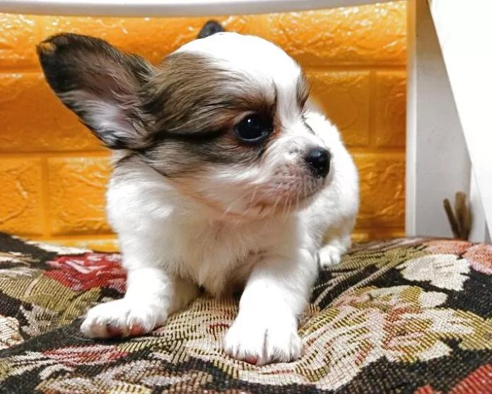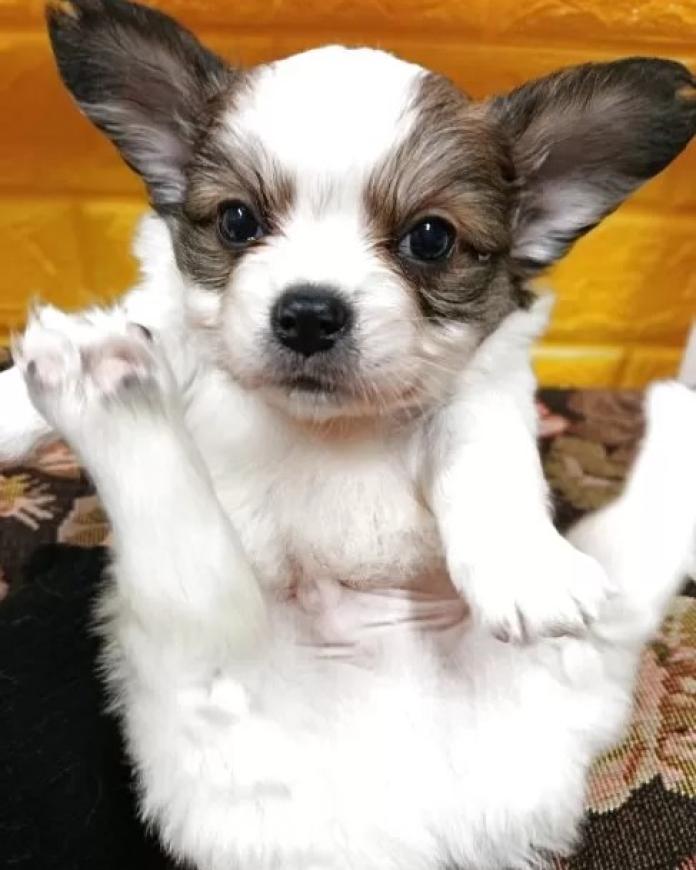パピヨンの男の子、毛色は華やかなレッドセーブル&ホワイト。左右対称に入った美しいブレーズがとても印象的で、お顔立ちの整った本当に綺麗な子です。気品溢れる雰囲気を持ちながらも、どこか愛らしさも感じさせてくれる魅力いっぱいの男の子です。