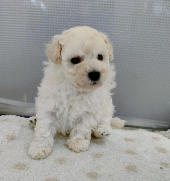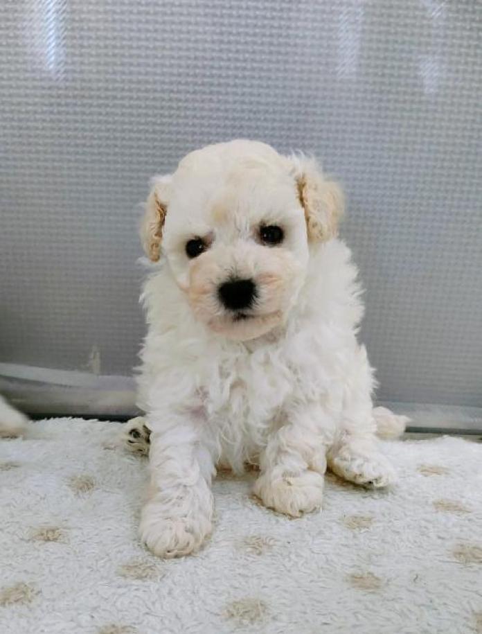 かじめくんは、兄弟の中の長男くんです🐶🤍 トイプードルらしい上品さと、しっかり者の雰囲気をあわせ持った可愛らしい子です。白い被毛はまるで綿あめのようにふんわりとしていて、抱っこするとその柔らかさに思わず笑顔になってしまいます。
