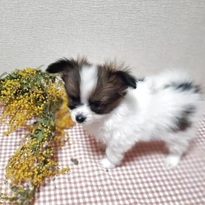 パパはジュニアチャンピオンのパピヨン・トトくん、ママはお目めクリクリの明るいティーナちゃん。その大切な両親から誕生した、私にとっても特別な存在です。