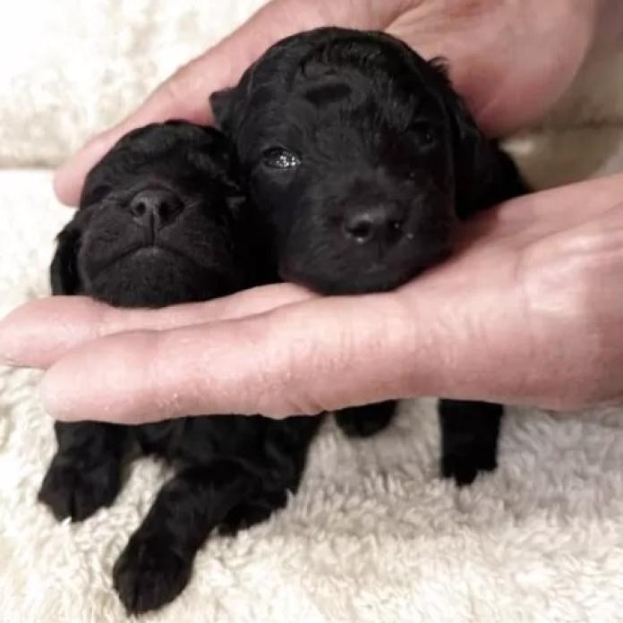 トイプードルの女の子で、毛色はブラック。くりくりしたお目目とふわふわの被毛がとても愛らしく、女の子らしい優しい雰囲気のある子です✨ これからの成長とともに、ますます可愛くなっていくのが楽しみです。