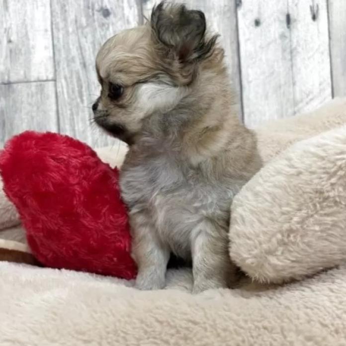 チワワ(ロング)、フォーンホワイトの女の子になります。ころころとした可愛らしいドワーフ体型で、とても愛嬌のある子です🐶✨