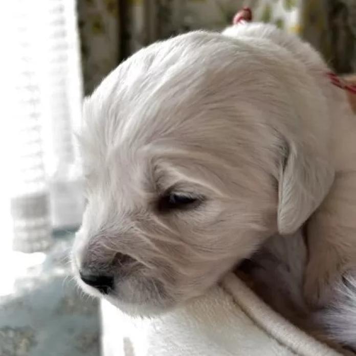 ふんわりとしたクリームカラーの被毛に、穏やかな雰囲気をまとったとても魅力的なパピーです✨ 見ているだけでほっとするような優しい表情が印象的で、ゴールデンレトリバーらしい温かみのある可愛らしさを感じていただける子です。