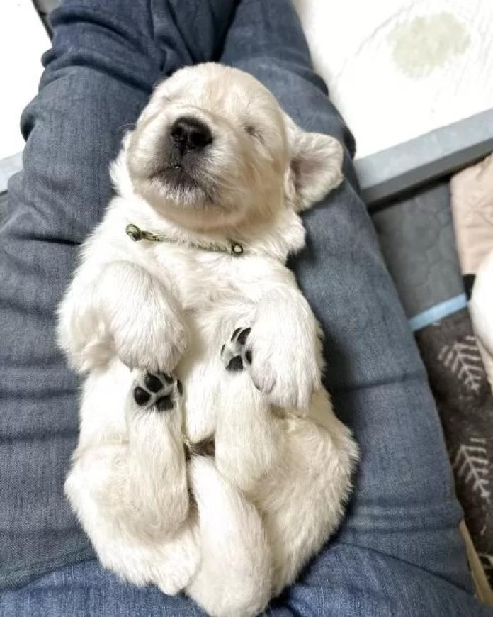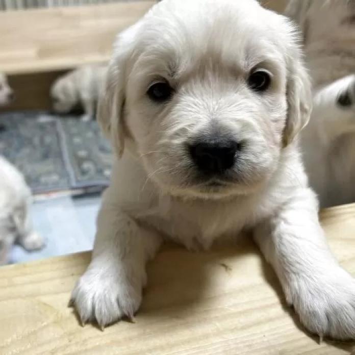 ホワイト寄りのクリームカラーの柔らかな毛並みがとても美しく、穏やかな雰囲気をまとった可愛らしいパピーです。優しい表情が印象的で、見ているだけで癒されるようなゴールデンレトリバーらしい温かみを感じさせてくれる子です✨