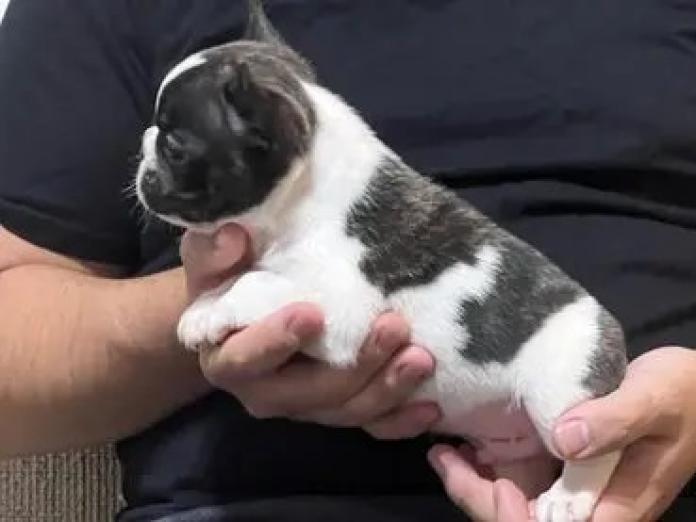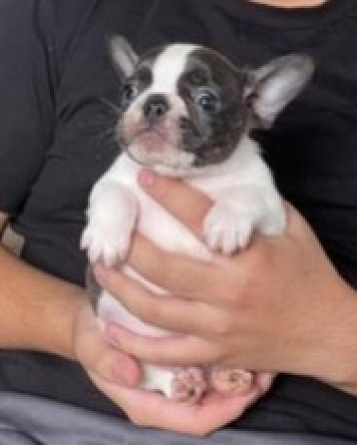 フレンチブルドッグの中でも人気のパイドカラーの男の子です✨