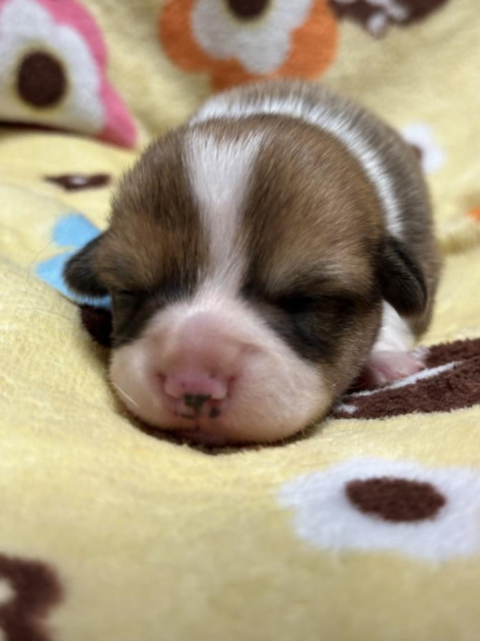 ウェルシュ・コーギー・ペンブロークのレッド&ホワイト、3兄妹の中のひとりとして元気に育っています✨