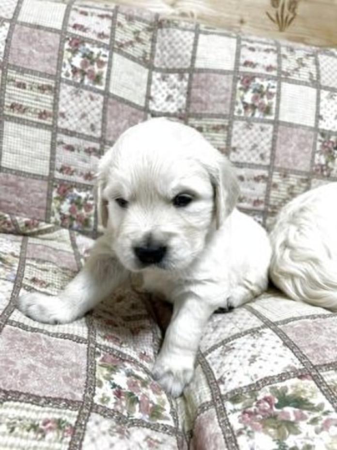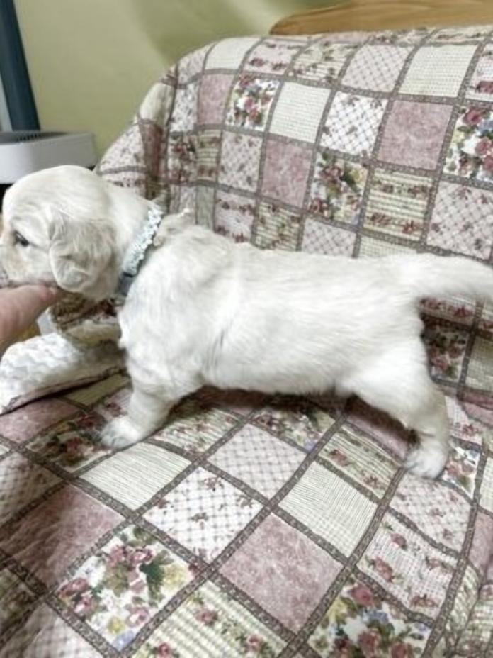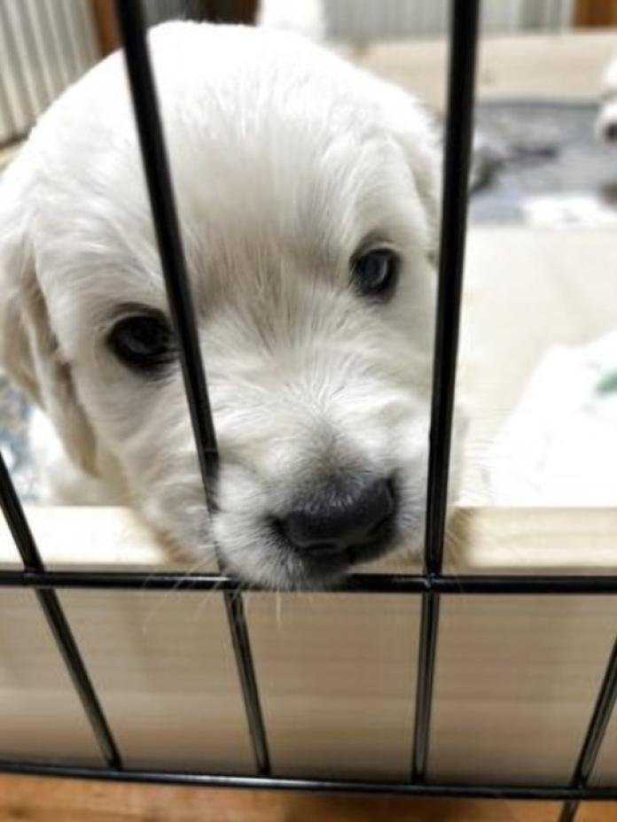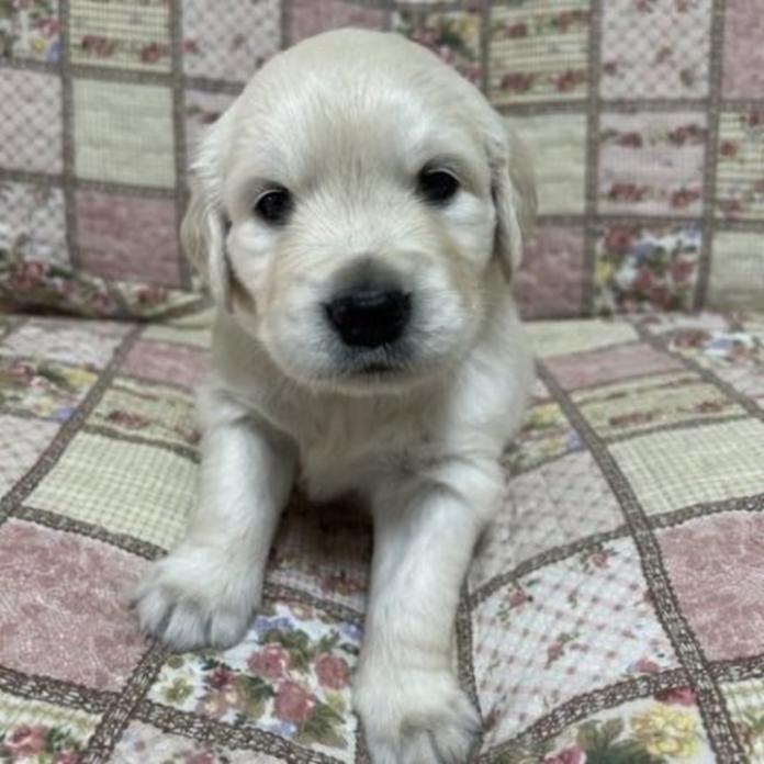 ゴールデンレトリバーのクリームカラーの男の子で、ふんわりとした優しい表情がとても愛らしい子です😊 見ているだけで癒されるような、穏やかな雰囲気を持っています。ヨーロッパ系血統のしっかりとした魅力を受け継いでおり、上品さも感じられる子です✨