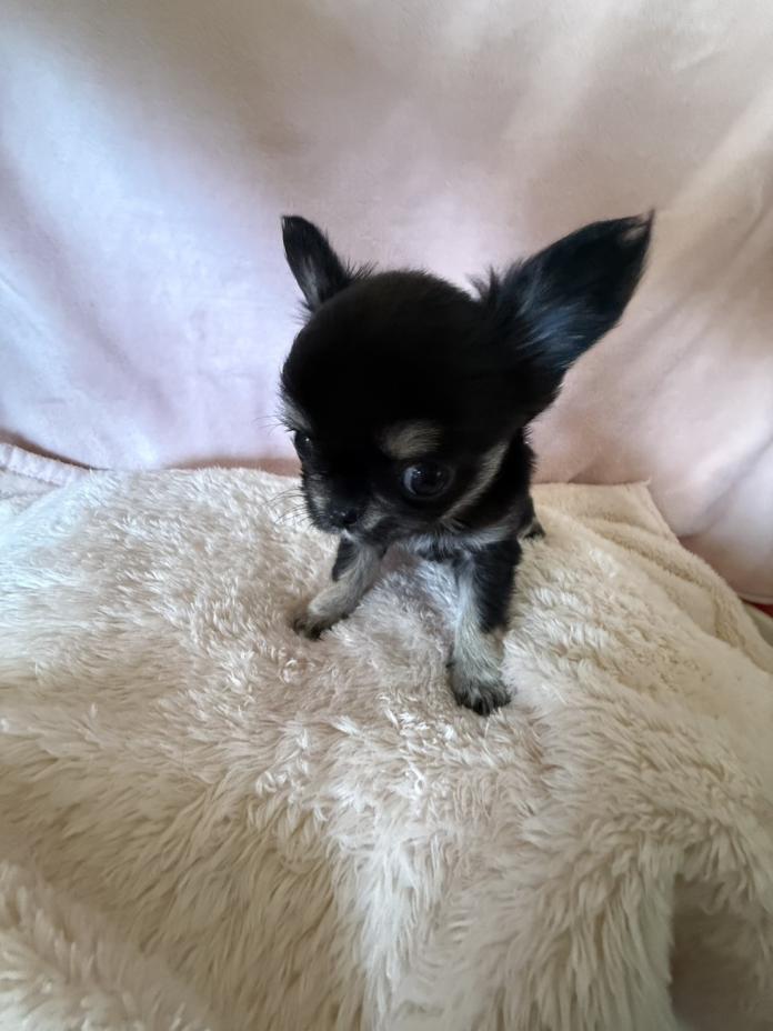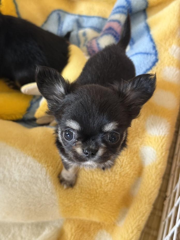 はっきりとしたブラックタン&ホワイトの毛色がとても綺麗で、愛らしいお顔立ちのロングコートチワワの女の子です💕