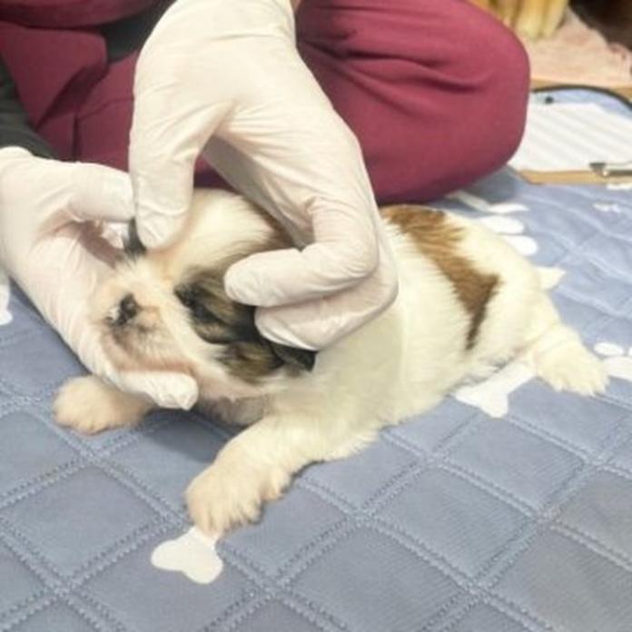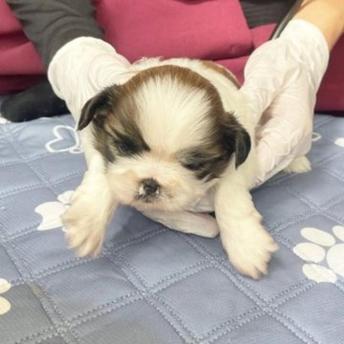 ゴールド&ホワイトのやわらかな毛色に包まれた、とても愛らしいシーズーの女の子です🩷