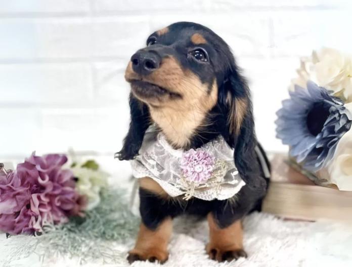 この子はカニンヘンダックスフンド(ロング)のブラックタンの女の子で、見た目はもちろん、中身までとっても魅力たっぷりな子なんです😊 全体的にキュッと引き締まった体つきをしていて、小さな体の中にしっかりと筋肉がついています。元気いっぱいで運動能力も高く、走る姿はまるで小さなアスリートのよう✨