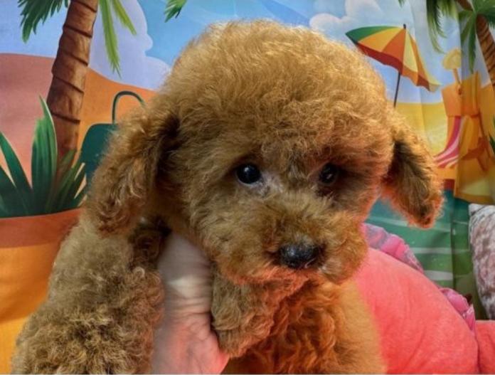 毛色もトイプードルの中でも人気の高いレッドカラー。ふわっと柔らかく、将来的にトリミングでいろいろなカットが楽しめそうです✂️