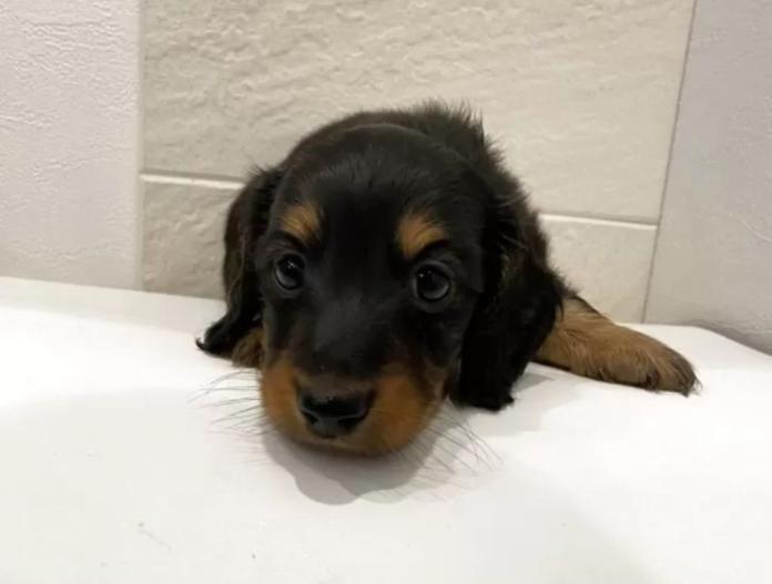 🐶この子はカニンヘンダックスフンド(ロング)の男の子で、兄妹の中でも特に愛らしい表情が印象的です。ゆとりある環境で、兄妹たちと元気いっぱいに遊びながら、毎日スクスクと成長しています♪