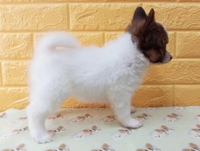 パピヨンの桔梗ちゃんから生まれたレッドセーブルの小さなプリンセスで、赤ちゃんらしい柔らかい表情に思わず見惚れてしまいます✨ ふんわりとした毛色と優しいお顔立ちがよく映えて、これからの成長がとても楽しみになるお嬢様です。