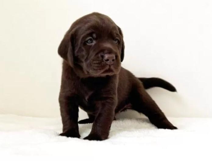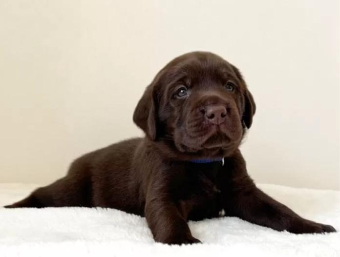 ラブラドールレトリバーのチョコカラー、青リボンくん🥰