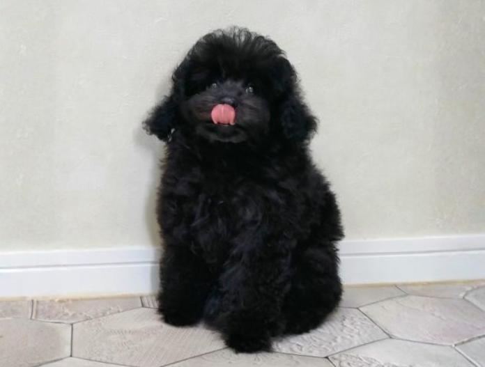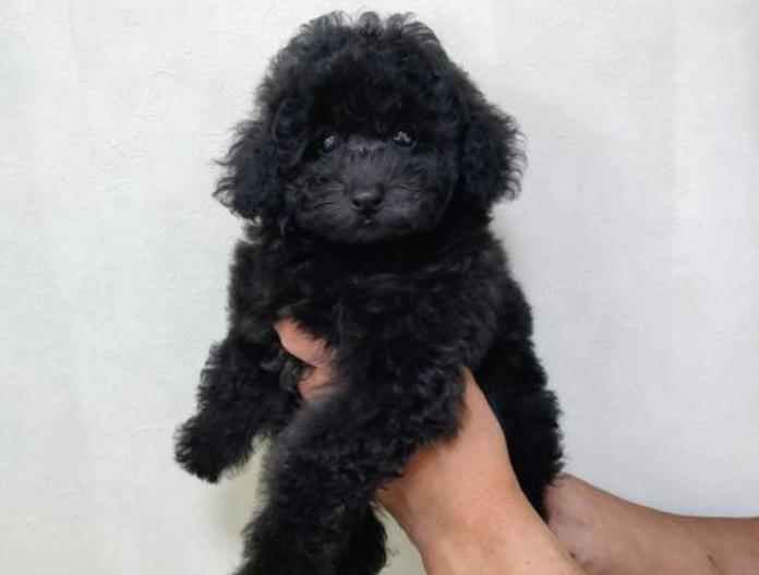 ✨トイプードルの男の子「テガムくん」。将来的にシルバーへと変化していく予定ですが、今は艶っぽい美しいブラックの毛並みがとても印象的です。くりくりした瞳と可愛らしい表情で、見る人を惹きつける魅力を持っています。