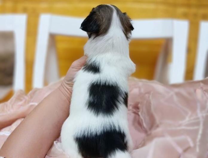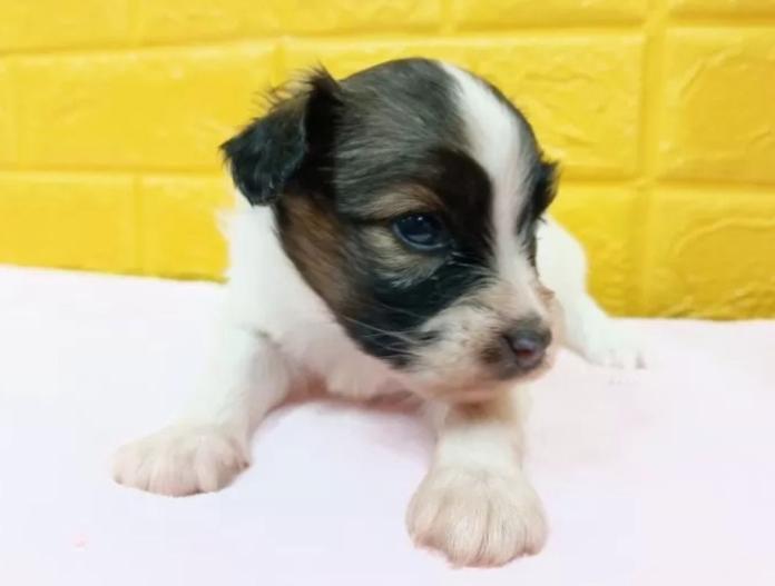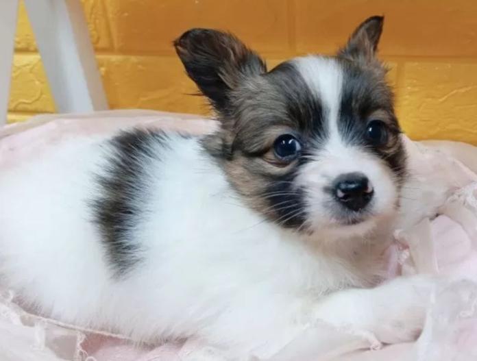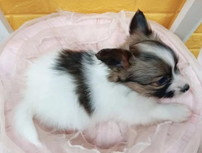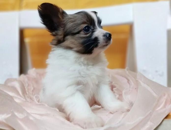 生まれたばかりのパピヨンの女の子で、レッドセーブル&ホワイトの美しい色合いがひと際目を引く、愛らしい雰囲気の子です。柔らかい表情と澄んだ瞳がとても可愛く、成長とともに耳の飾り毛もふんわり伸びて、さらにエレガントな雰囲気が増していくと思います💕