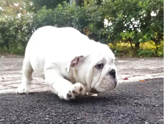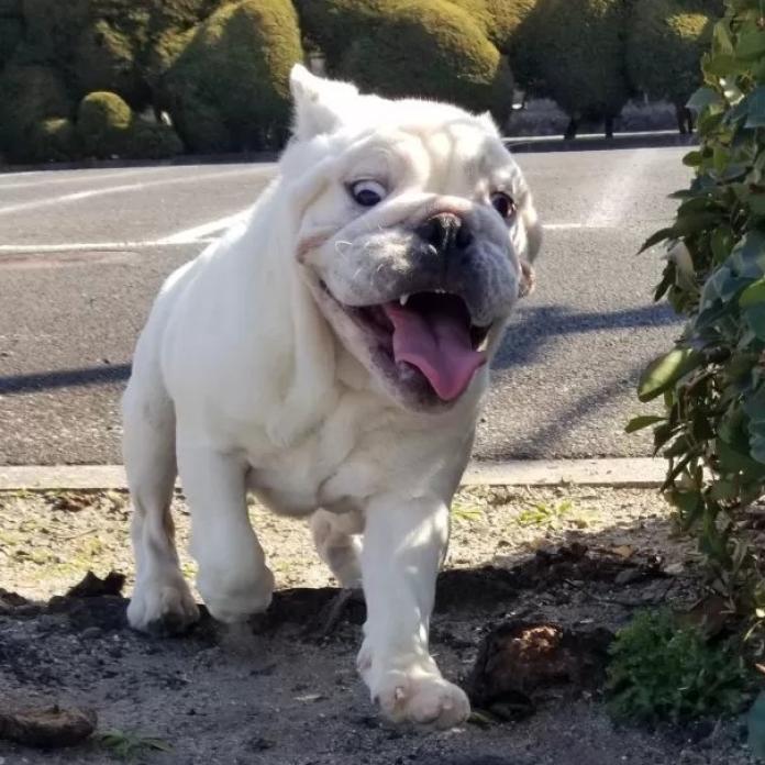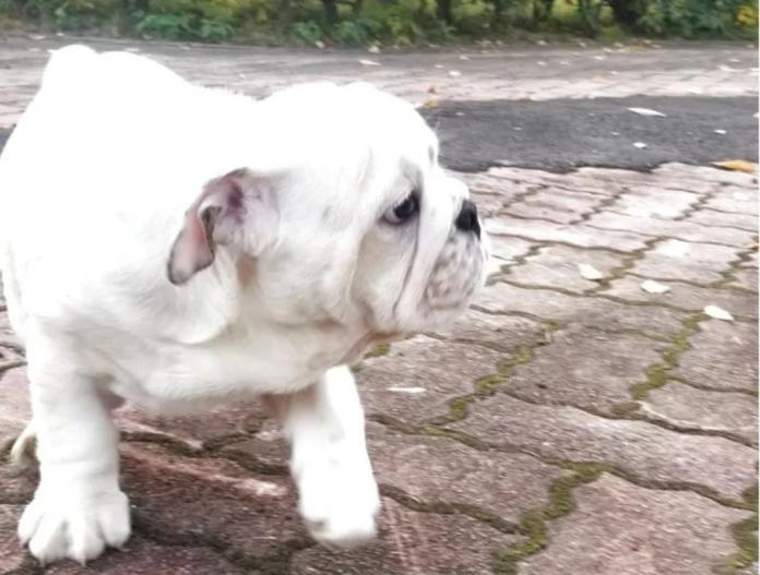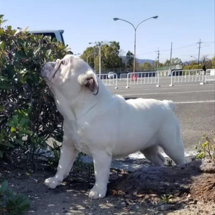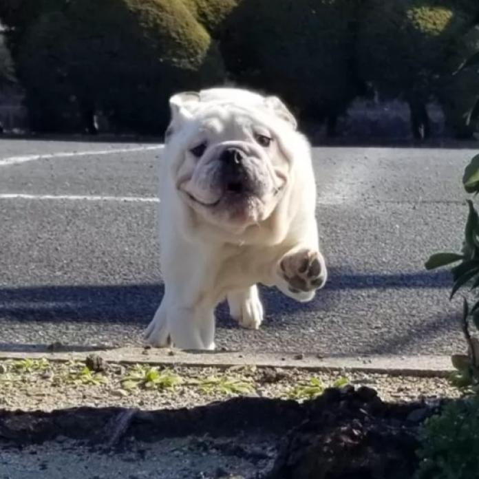 真っ白な身体がまず印象的ですが、性格もとても可愛らしく、後ろをついてきて甘えてくれる姿が本当に愛おしい子です💕 遊ぶことが大好きで、声をかけると嬉しそうに駆け寄ってきてくれる人懐っこさも魅力です。ブルドッグらしいどっしりした体つきと優しい表情のバランスが抜群です。