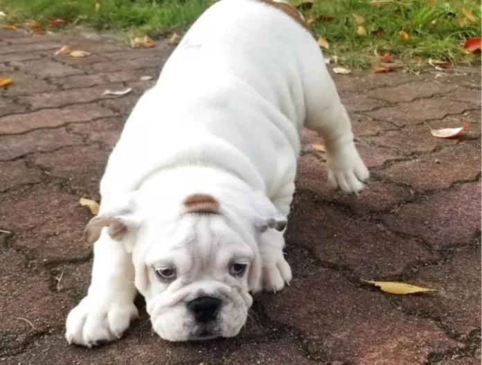 ブルドッグの男の子で、綺麗なホワイト&レッドのカラーがとても魅力的な子です。特に頭のセンターとしっぽのレッドが可愛らしく、この子の大きなチャームポイントになっています😊✨ 活発で明るい性格をしていて、目が合うとすぐに駆け寄ってきてくれる、とても人懐っこい男の子です。