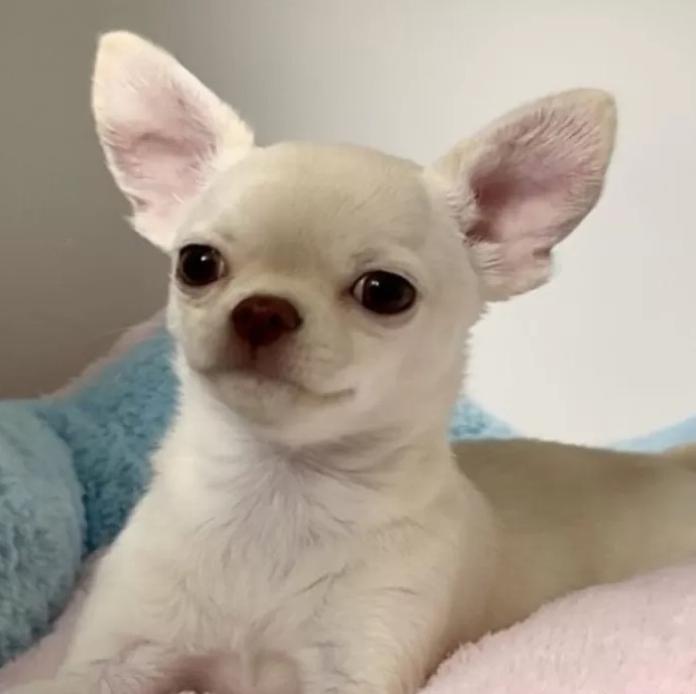 クリームカラーがとても綺麗で、光の当たり方によってふんわり柔らかく見える、優しい雰囲気のスムースチワワの男の子です✨