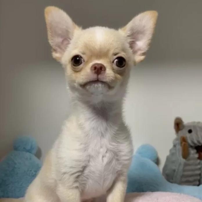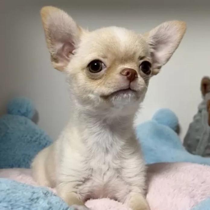クリームカラーがとても柔らかく、優しい雰囲気をまとったスムースチワワの男の子です。ぎゅっと詰まった健康的なボディで、抱っこすると“しっかり感”があり、そのまま連れて帰りたくなる可愛さです🐶✨