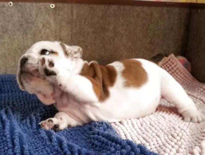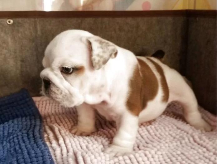 この子はブルドッグの男の子で、レッド&ホワイトの美しいカラーがとても映える子です。ずんぐりむっくりとした体型と、思わず笑顔になってしまうような可愛いお顔が魅力で、見ているだけで癒されます☺️