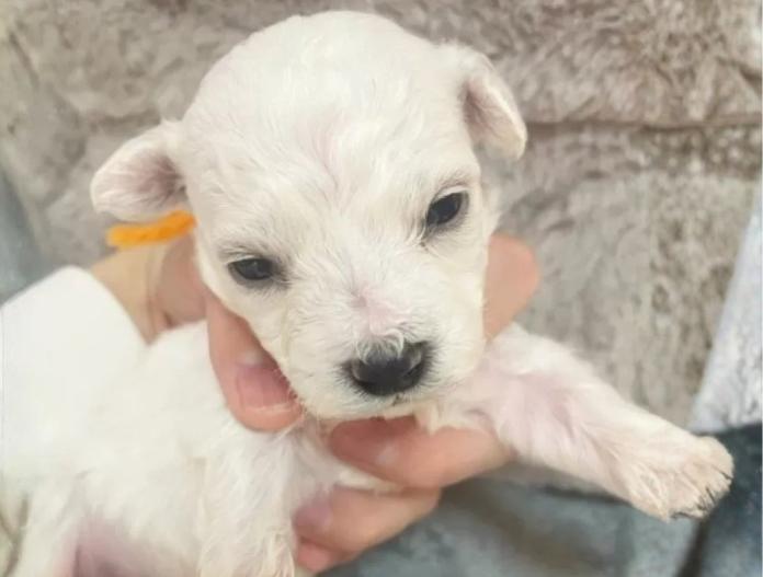 ビションフリーゼらしい愛らしさたっぷりのホワイトカラーで、通称「オレンジくん🧡」。見ているだけで心がほっこりする、とても可愛い男の子です。