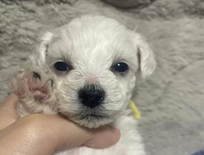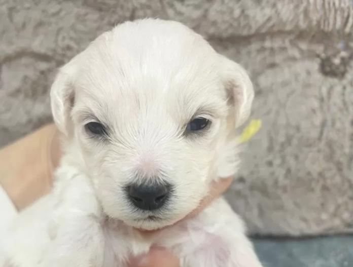 ビションフリーゼらしいふわふわのホワイトに包まれた、兄妹の中でいちばん小さな「黄色ちゃん💛」。守ってあげたくなるような可愛さで、見ているだけで自然と笑顔になります。