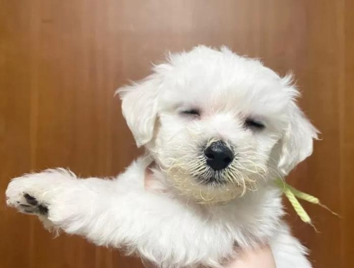 ビションフリーゼらしいふわふわのホワイトに包まれた、愛嬌たっぷりの「きみどりくん💛💚」。見ているだけで心が和む、癒し系の可愛い男の子です。