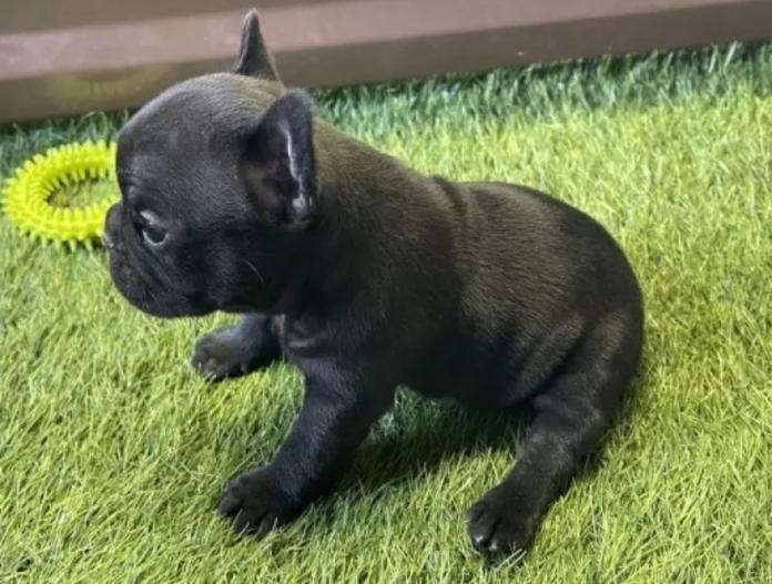 ブラックブリンドルですが差し毛のない、まるで漆黒のような美しいブラックカラーがとても印象的なフレンチブルドッグの男の子です。光に当たるとツヤっと輝く被毛は、本当に見惚れてしまうほど✨