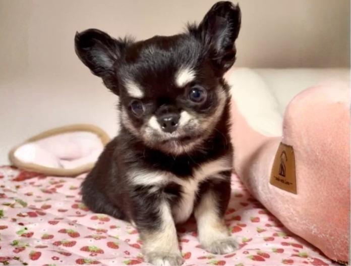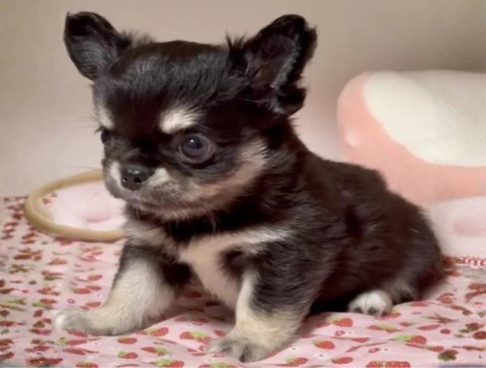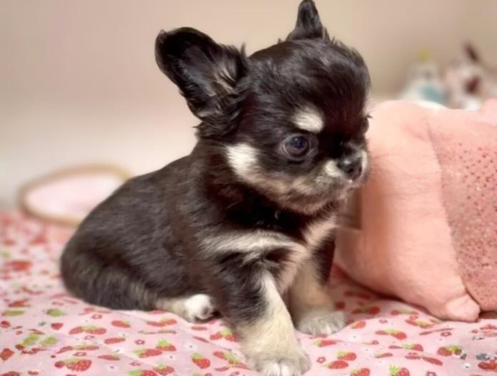 チワワ(ロング)らしい愛らしさがぎゅっと詰まった、ブラックタン&ホワイトの女の子が誕生しました。思わず見とれてしまうほどのお顔立ちで、「可愛い!」と声が出てしまう子です💕