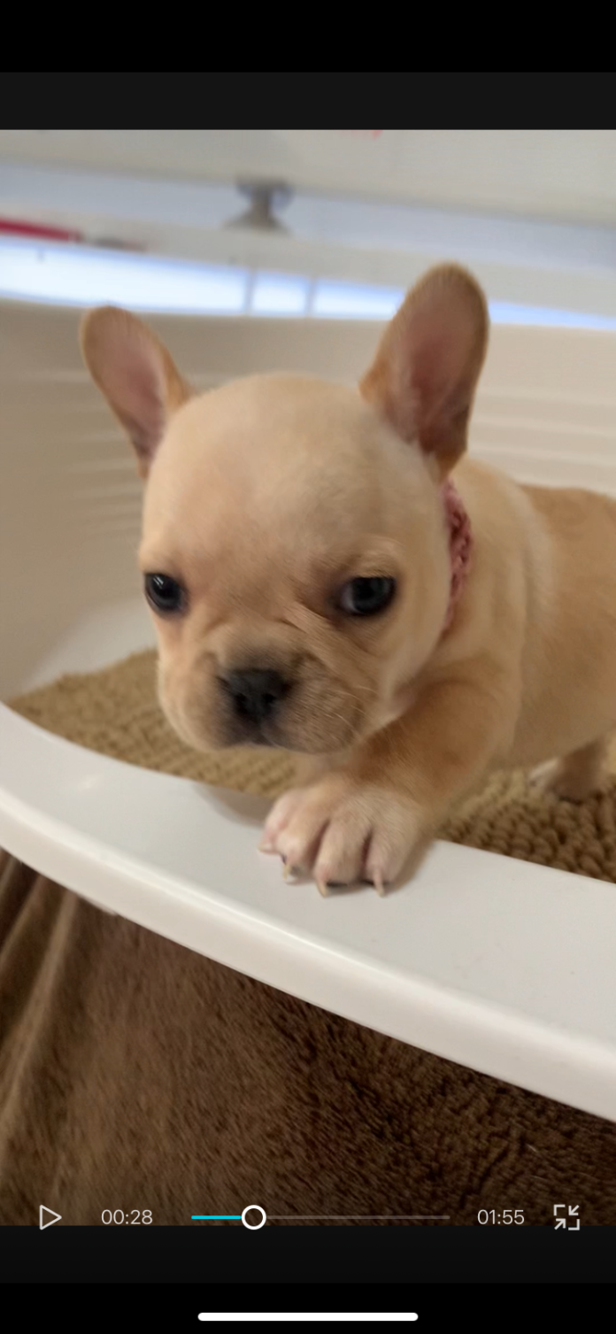 フレンチブルドッグの女の子で、カラーは柔らかく上品なクリームです。ふんわりとした優しい色合いがとても可愛らしく、見ているだけで癒される雰囲気を持った子です✨