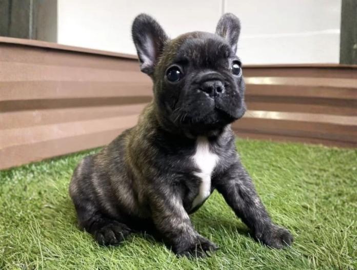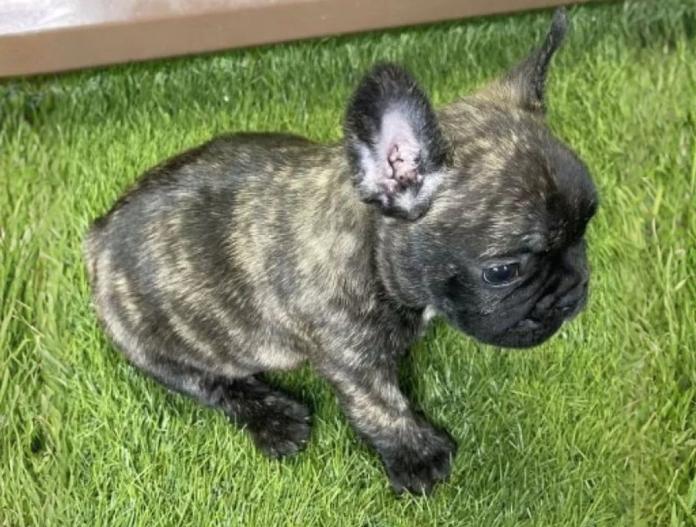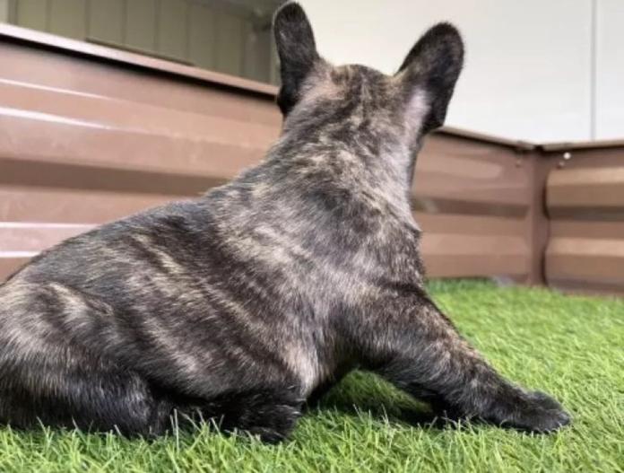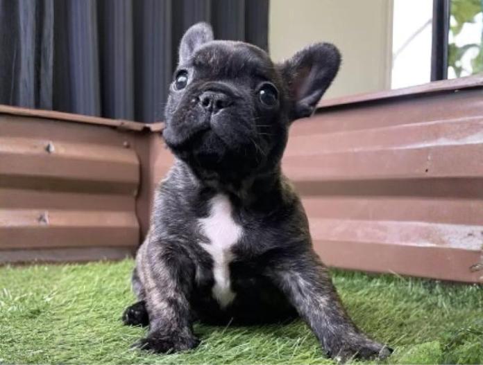 フレンチブルドッグの男の子で、カラーは存在感抜群のタイガーブリンドルです。優しい表情の可愛いお顔立ちに、しっかりと入ったブリンドル模様が映え、とても目を引く子です✨