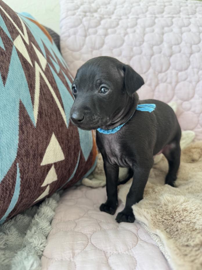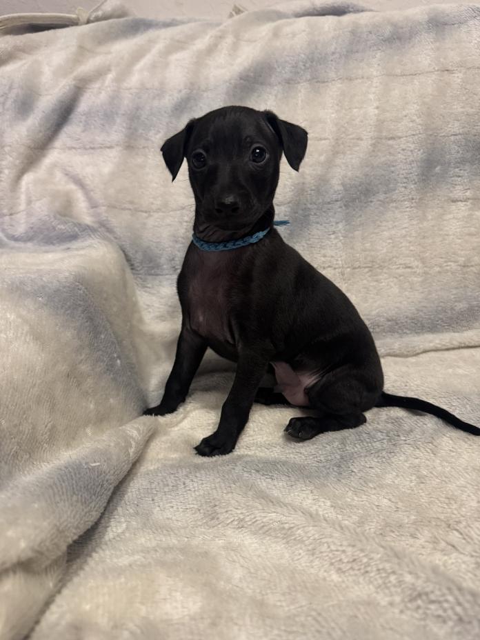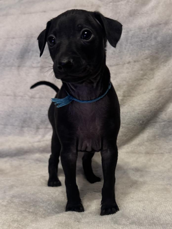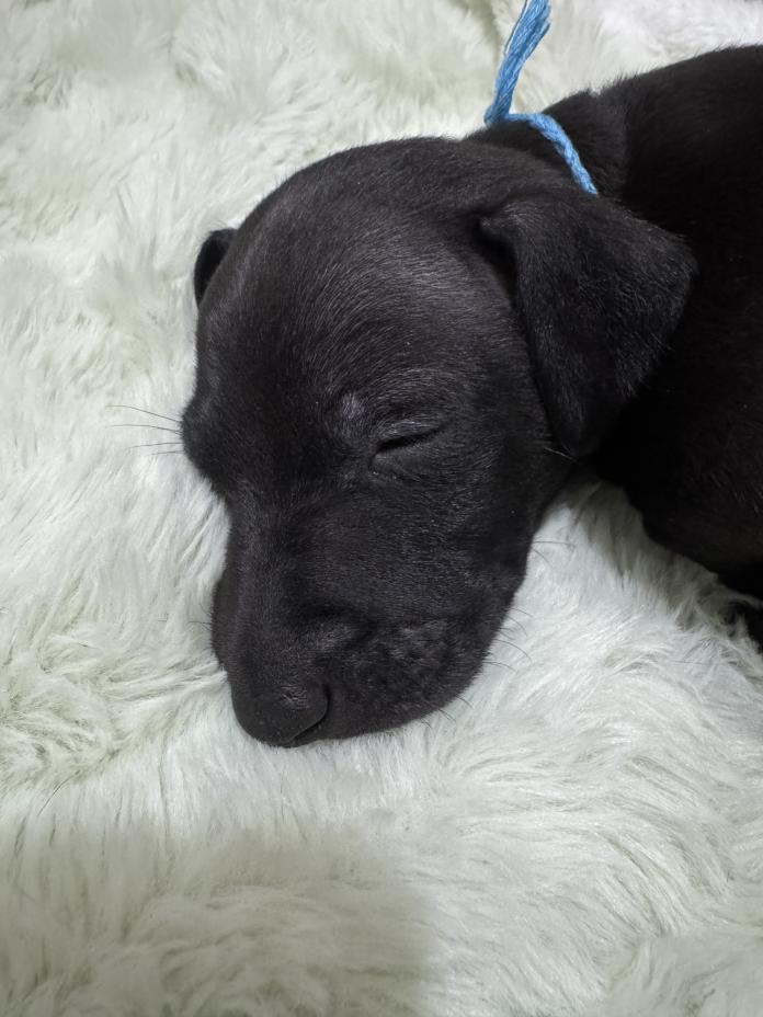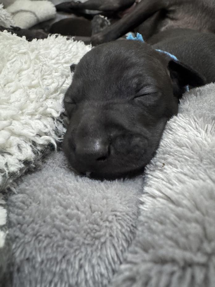 3頭姉弟、2番目に生まれた長男くんです。ブルーの目印を付けてあるので、愛称はネモくん(ネモフィラ)です。しっかりとしたボディと落ち着いた気質の真っ黒な男の子です。ホワイトマーキングはお胸にほんの少し入っています。両親共にIGに推奨される遺伝子検査を海外で実施済み-緑内障、エナメル質形成不全、PRA-ノーマルです。プラスして水晶脱臼も検査しており、両親共にノーマルです。