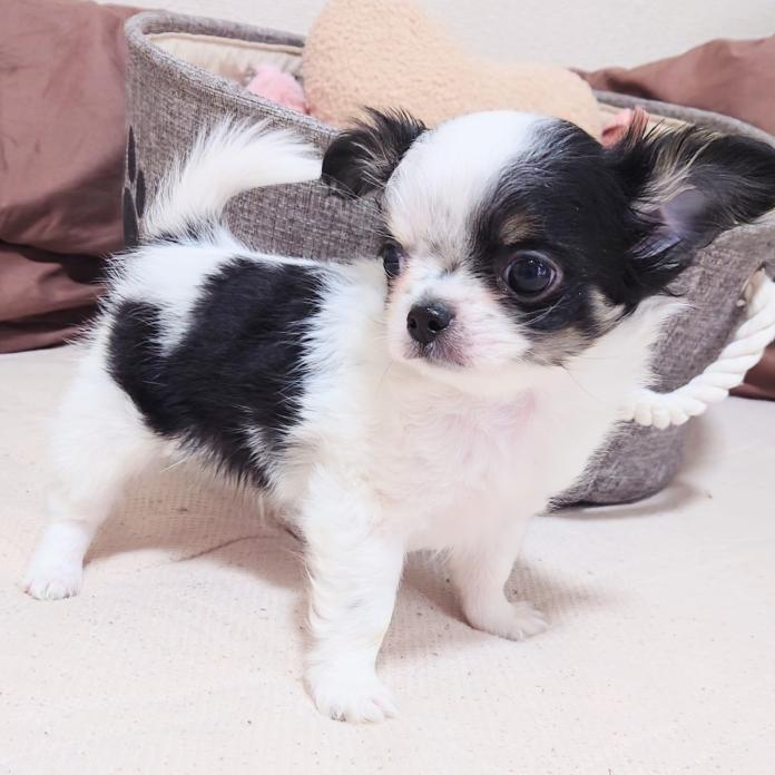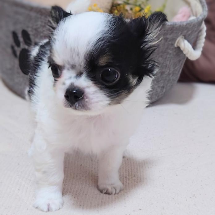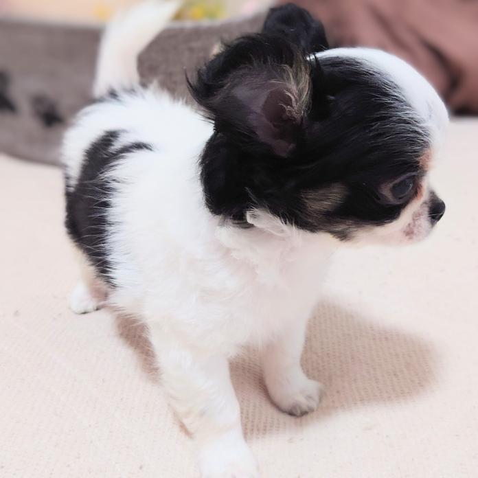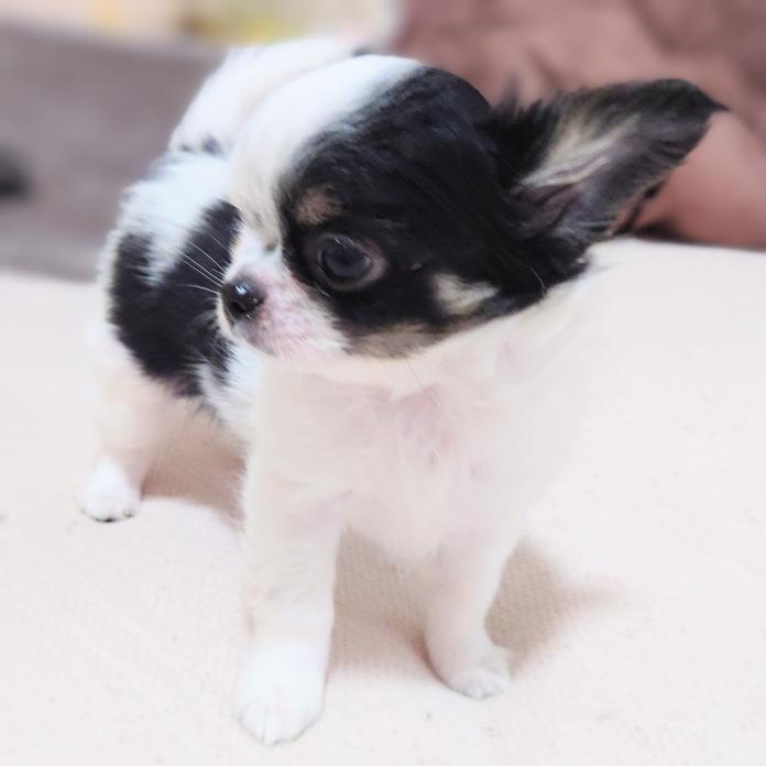 チワワ(ロング)らしい可愛さの中に、存在感のある毛色がとても魅力的で、見ているだけで目を引く子です✨