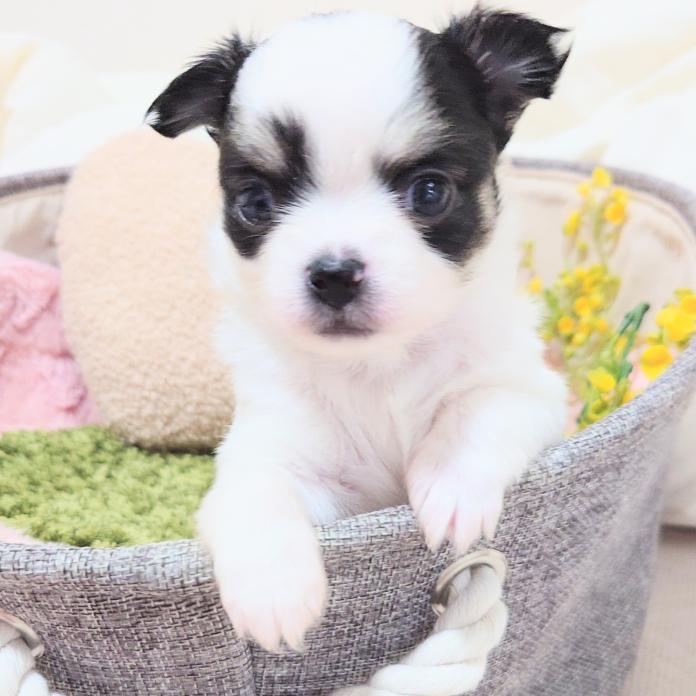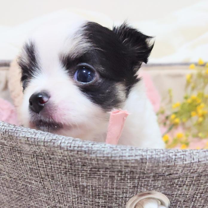 お父さんはJKCチャンピオンで、整ったお顔立ちや安定感のある体型の良さが感じられます。お母さんの深い愛情をたっぷり受けながら育ち、現在はムチムチとした体つきで、元気いっぱいにすくすく成長中です♡抱っこすると、ずっしりとした重みとぬくもりが伝わってきます。